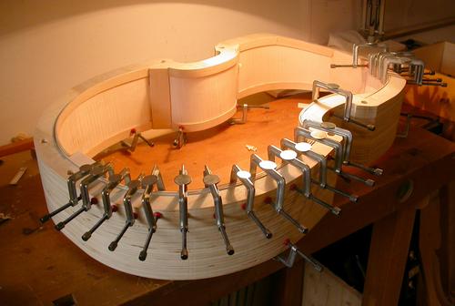 Die Reifchen werden in den Zargenkranz geleimt. Der Kranz ist in der angefertigten Außenform zusammengesetzt.