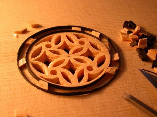 Einpassen der konisch geschnittenen Kranzintarsien