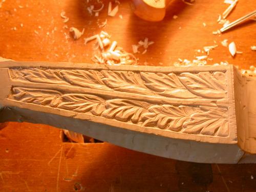 Die Wirbelkastenrückseite erhält ihr Blattmuster