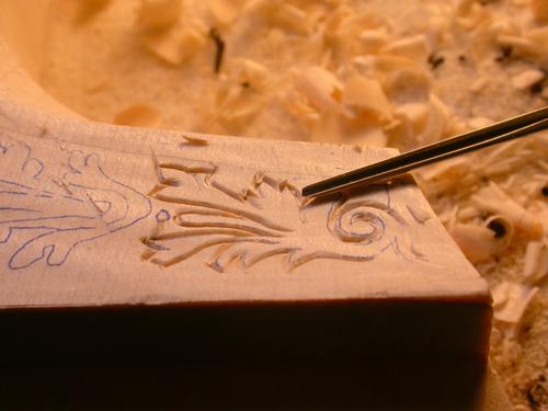 Schnitzereien am Halsfuß
