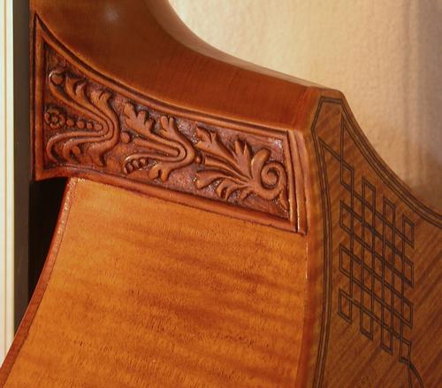 Seitenansicht der kopierten Schnitzereien und die Bodenintarsien